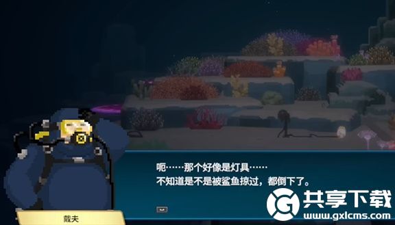 1、首先是进入到水中,在下面是会话,这个灯具可能是被鲨鱼略过。