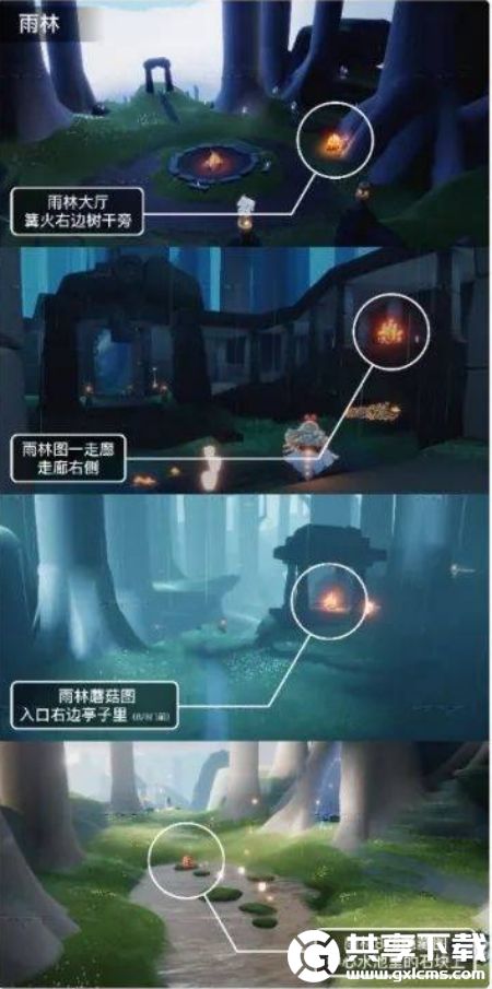 今日大蜡烛在云野、雨林、暮土,小伙伴们可以参考下图进行寻找: